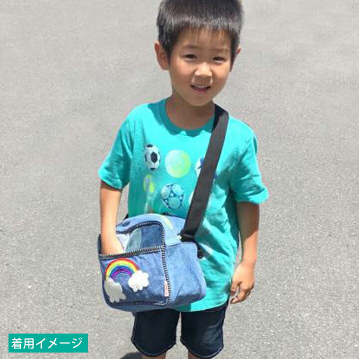 10800円(税込)以上送料無料!キッズショルダーバッグ(通園バッグ) フェルトワッペンが可愛いターンオーバーのデニムショルダーバッグ。