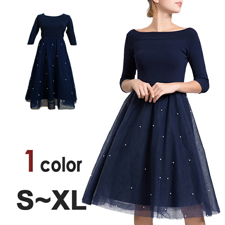 【20%OFFクーポン適用】 ワンピース レディース 七分袖 長袖 秋 冬 aライン チュールスカート フィット 長袖ワンピ 膝丈 大人 可愛い おしゃれ 上品 切替ワンピ エレガント 無地 きれいめ カジュアル 大きいサイズ 結婚式 二次会 謝恩会 送料無料
