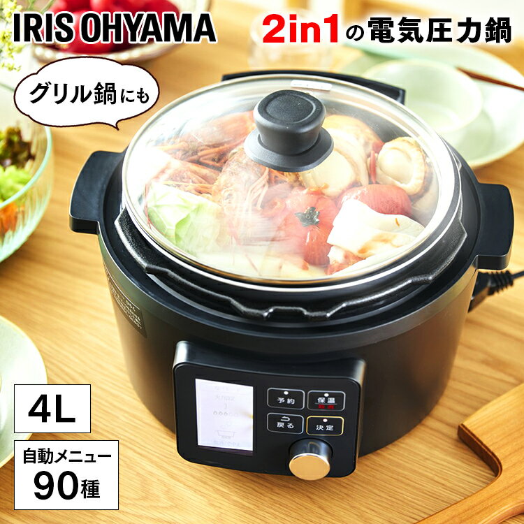 家電 インテリア おしゃれ アイリスオーヤマ 電気圧力鍋 4.0L 自動メニュー90種類 2WAYタイプ グリル鍋 ガラス蓋付き レシピブック付き 業界最高出力1000W 黒 2020年モデル PMPC-MA4-B