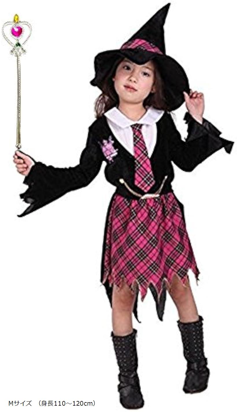 ハロウィン 衣装 魔法学園 かわいい 魔女っ子 キッズコスチューム 女の子 チェック柄 3点セット ネクタイ付き制服+魔女帽子+ハートのステッキ S271 Mサイズ 身長110〜120cm(Mサイズ (身長110〜120cm), Mサイズ)